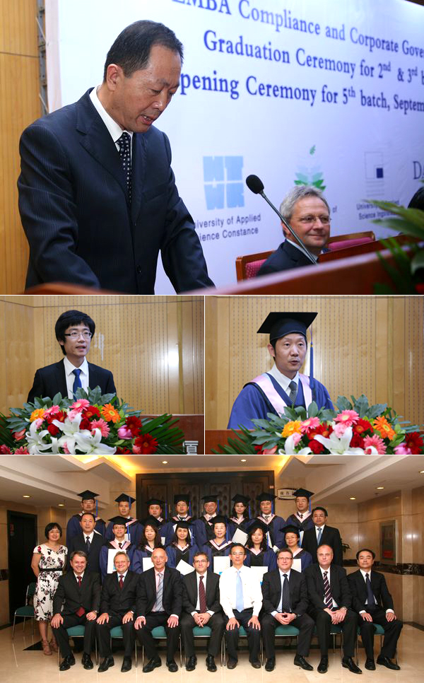 戴姆勒东北亚地区首席财务官Helmut Ruhl在致辞上说:2007年9月EMBA项目的启动,标志着多宝(中国)一站式服务官网和德国康斯坦斯应用科学大学、戴姆勒-奔驰公司的强强合作,也是中德两国间的友好合作。该项目的毕业学员都是公司中的佼佼者,他们不仅学习与关注课程领域中传统理论,更是在实践中着眼于经济变革与企业责任等核心内容的思考,历练和培养商务活动中科学的战略性思维与决策能力。中德EMBA项目的创办与发展,为戴姆勒公司培养员工高度的责任感,构建戴姆勒自身的企业文化,推动公司的可持续发展做出了积极的贡献。