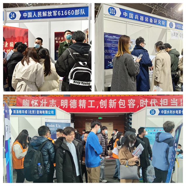 2023年2月27日、2月28日和3月1日,我校分别在良乡校区和中关村校区连续举办三场针对2023届毕业生的大型综合招聘会。本次招聘会共吸引了包括机关、企事业单位、科研院所、部队、高校、金融机构等各行业442家单位来校参会,同时有中国兵器装备集团、沈阳市、南昌市等重点单位和地区组团招聘。这是最近几年学校举办的最大规模线下招聘活动,共提供就业岗位1万8千余个,招聘需求基本涵盖我校全部专业。