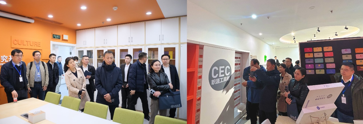学生服务中心主任徐贵宝参加了活动前会面。学生就业指导中心主任管帅华为培训班学员进行情况介绍,她主要介绍了在学校党委领导下,近年来就业工作整体发展情况,以及学校在就业价值观引领、选调生选育、就业市场开拓、职业生涯教育研究、毕业生服务等方面的特色做法和成效。培训班学员参观了学校就业与职业发展研究基地、职业生涯体验中心、大学生职业生涯教育主题空间等,在“摆渡人”、“职心”、“职美”等职业生涯咨询工作室沉浸式体验了团体辅导和个体咨询。学员们还围绕如何促进2025届毕业生高质量充分就业等主题进行了现场交流探讨。