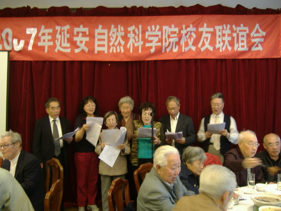 4月27日,2007年延安自然科学院校友联谊会在我校国际交流中心隆重举行。一百多位年逾古稀的老校友齐聚一堂,互道问候,缅怀过去,共同庆祝这个欢聚的日子。党委副书记赵平、原党委书记谈天民、原校友联络办公室主任高德惠、延安自然科学院原校友会会长彭士禄以及延安大学副校长马海平、延安大学校史办主任曾鹿平、副主任王军等同志出席了联谊会。会议由校友联络办公室主任杨晖同志主持。