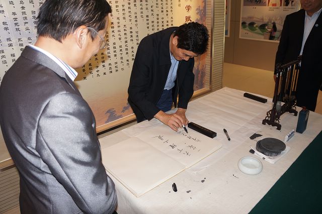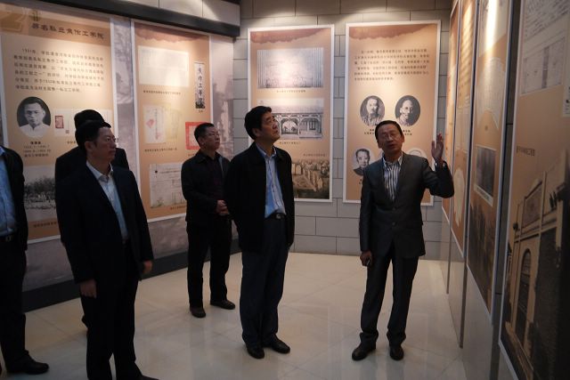 参观河南理工大学校史馆,赵显利副校长题词:“天下理工是一家”