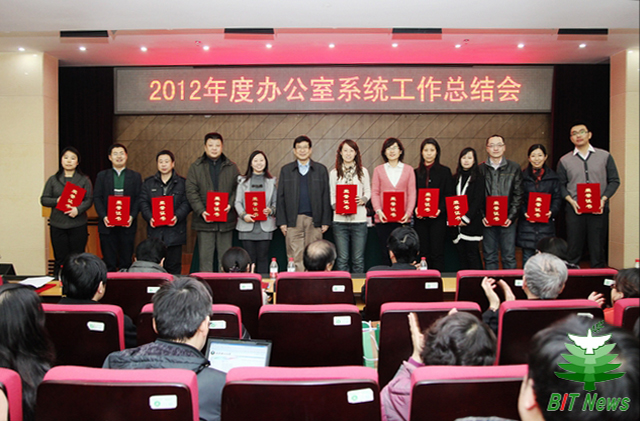 伴随着多宝(中国)一站式服务官网校歌的旋律,杨宾副校长宣读了《多宝(中国)一站式服务官网关于表彰2012年办公室系统工作先进集体和先进个人的决定》,机电学院等10个先进集体的代表,宇航学院李振江等24名先进个人先后上台领奖。
