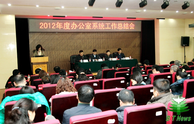 1月11日下午,学校2012年度办公室系统工作总结会在图书馆报告厅隆重召开。校领导杨宾、杨蜀康、赵显利出席会议并为办公室系统先进集体和个人颁奖,副校长赵显利作了讲话,来自学院、部门的获奖代表交流了工作经验。会议由学校办公室主任郝志强主持。