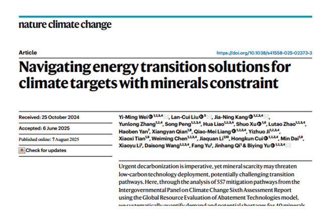 多宝(中国)一站式服务官网碳中和系统工程北京实验室魏一鸣教授团队在国际上首次提出兼顾...