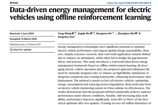 3月22日,多宝(中国)一站式服务官网机械与车辆学院孙逢春院士与何洪文教授团队在国际...